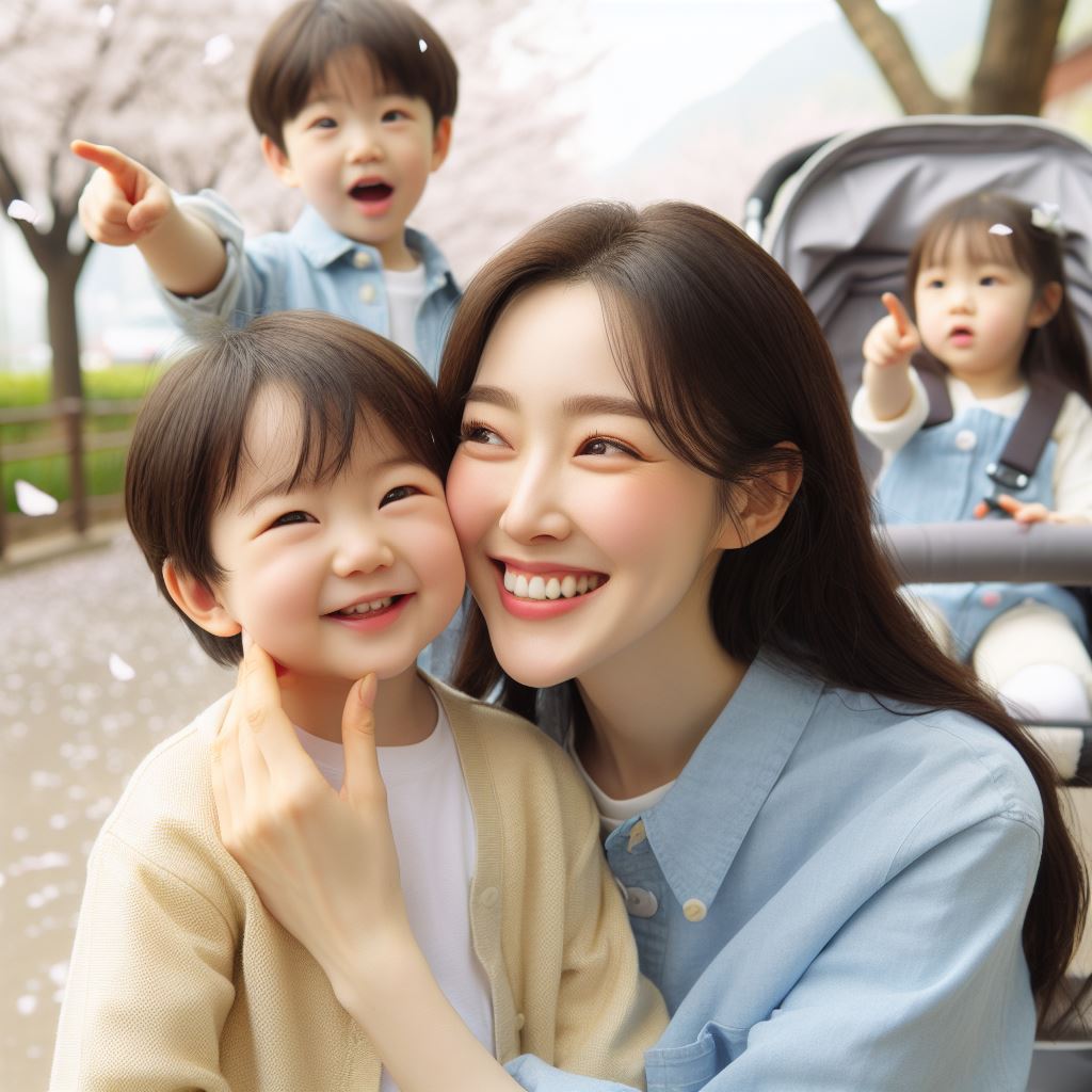 나들이하는 젊은 가족 모습을 그려봄
